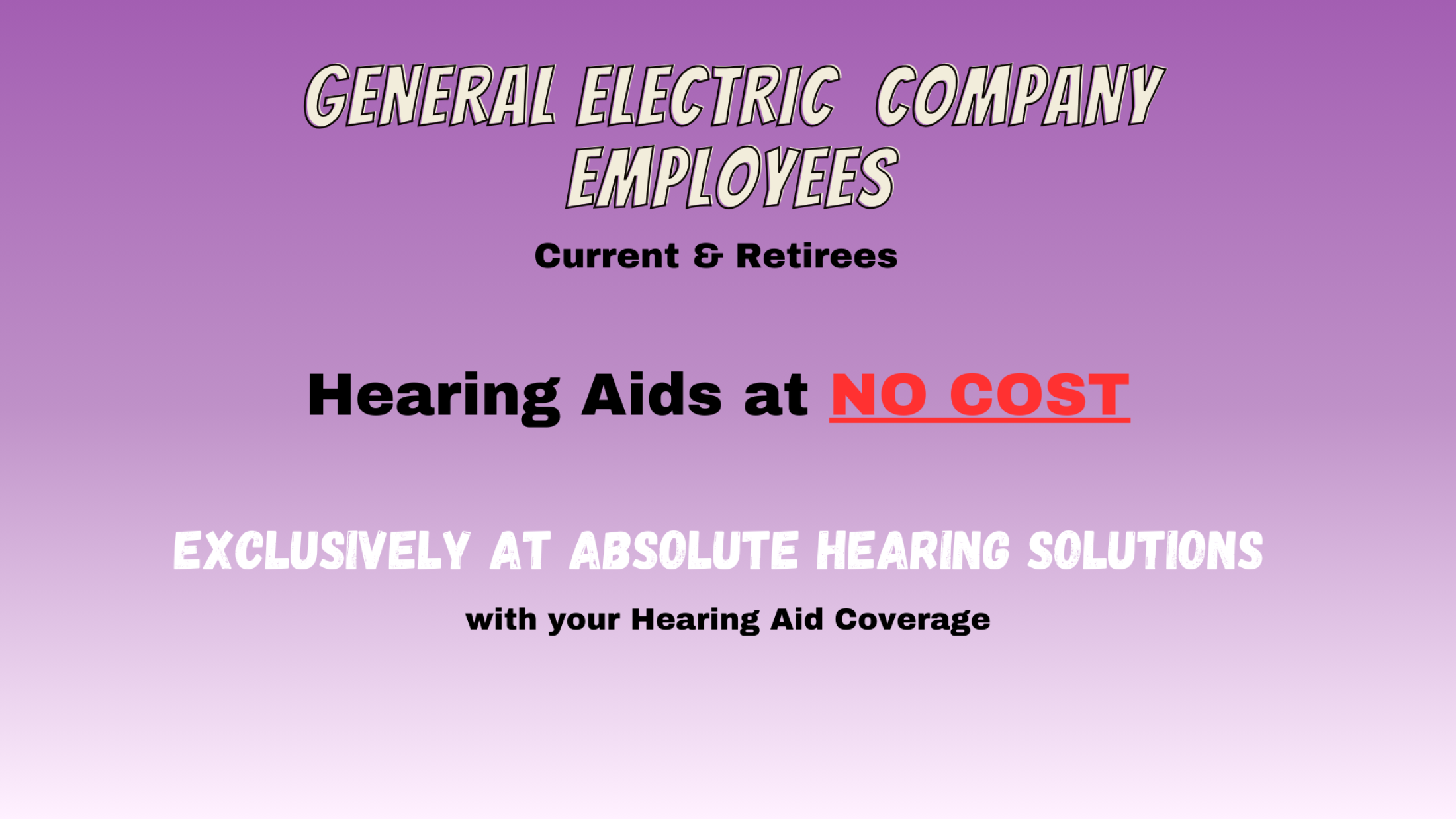 Absolute Hearing Solutions works closely with the General Electric Company Employees guaranteeing the best service and pricing for their hearing aid coverage. As an approved provider, we can help you navigate this hearing aid coverage to help get you the best discounts and/or complimentary hearing aids.